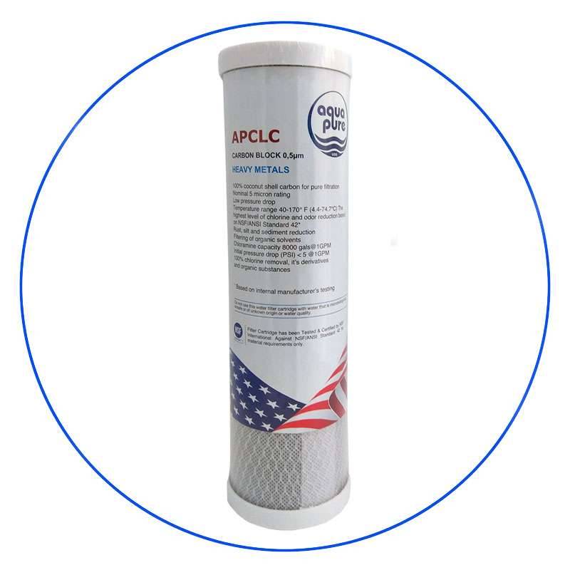 APCLC, το φίλτρο συμπαγούς ενεργού άνθρακα της Aqua Pure αποτελεί ένα πολυδύναμο φίλτρο, κατασκευασμένο για να προσφέρει προστασία από μια σειρά μολυσματικών παραγόντων του νερού βρύσης, με έμφαση στην αποτελεσματική απομάκρυνση του μόλυβδου έως και 0,5 micron.