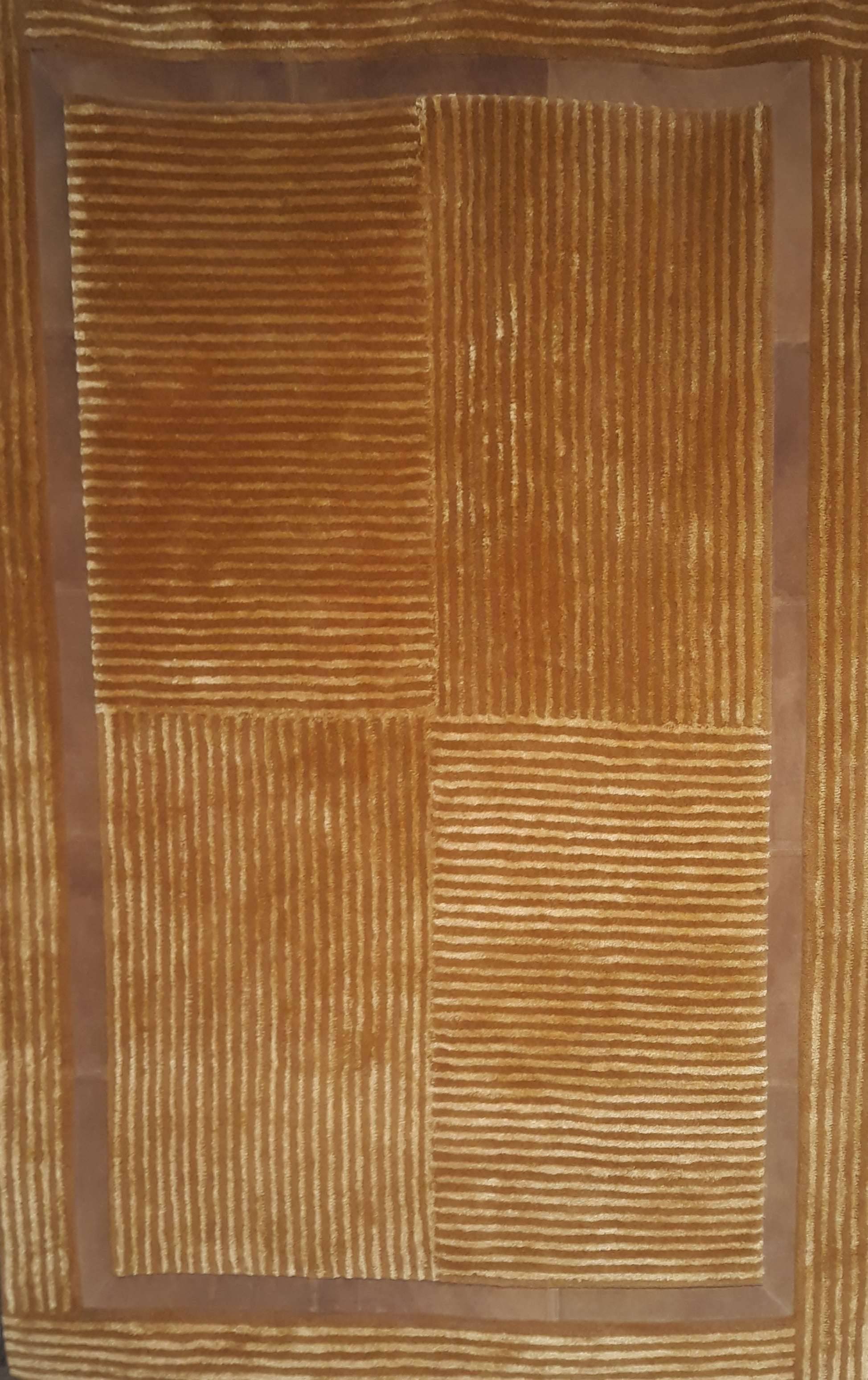 Guy Laroche Paris all-wool Handtufted 1.60X2.30 rug with 2.5 cm pile. Modern rug with honey background and leather trim. Suitable for living rooms, sitting rooms and dining rooms but also in any modern space. By Guy Laroche.