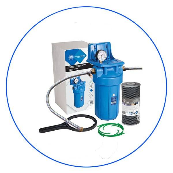 Professional Undercounter Big Blue 10" Filter Directly Connected to the Kitchen Faucet, with high consumption (professional). Powerful Big Blue undercounter system directly connected to the cold water supply of the domestic faucet. The system includes : 1) Big Blue 10" Canister ( 10″ x 4.5″) – 6 bar. 2) Canister Wrench and Wall Mount Bracket 3) 1/2″ High Pressure Inox Spiral (two 50cm long pieces) for quick series connection of system in the cold water line of the household faucet without drilling the kitchen counter 4) Big Blue Aqua Filter Silver FCCBL-S 10BB solid activated carbon filter to remove chlorine, unpleasant taste and odor from water as well as many organic chemical elements, offering at the same time effective filtration of 10 micron solid particles for up to 12000 liters of water Installation of the system is very simple as it includes everything needed to quickly connect and and easily under the kitchen counter. Choosing the included Aqua Filter Silver FCCBL-S 10BB carbon filter offers effective water filtration without the drop in flow or pressure at the kitchen faucet outlet. Certified by: