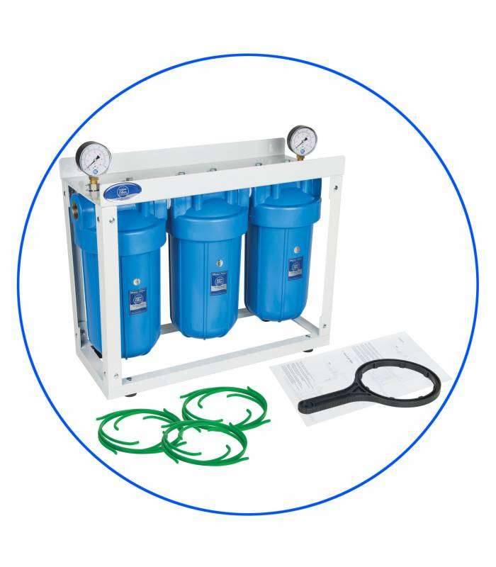 It is an ideal choice for industrial use and in cases of high consumption. It has a 1″ inlet/outlet and is suitable both for installation in a central supply and at the point of consumption under the professional kitchen counter when the need for filtered water is great (cafes, restaurants, professional hotel kitchens, industries, etc.). The heads are equipped with a pressure relief valve (providing the ability to release air bubbles) that are collected and two pressure gauges (providing pressure drop monitoring). This configuration allows the measurement of pressure drop in the inlet and outlet connections. Depending on the level of water contamination, the system can be configured with sediment filters, carbon or even specialized filters to deal with specific microbes. Accepts all Big Blue replacement filters, measuring 10″ x 4.5″ (25.4 cm x 11.5 cm). It comes with a wall mounting base, a tightening key and a pressure gauge for easy diagnosis of the pressure drop due to the replacement filter. The operating pressure of the filter reaches 16 bar. Before buying them, make sure you have access to the water supply pipes and for their installation, it would be good to contact a professional plumber. Their regular maintenance (filter change) is also important to avoid pressure drop. Features: Operating Temperature: 2°C-35°C Dimension (Height-Width): 45.5*22 cm Certified by: